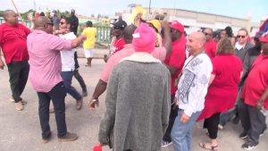 There were several attempts to push past the police line, but tensions largely stayed in check, with restraint on both sides avoiding a full confrontation. After delivering their message to the SSB board, the UDP shifted focus to freeing “Yellowman.” Led by Tracy Panton, protesters moved up Princess Margaret Drive and onto Belcan Bridge, blocking traffic and vowing not to leave until he was released. When police didn’t respond, plans were made to shut down the Flag Monument roundabout during the lunch‑hour rush; but just then, word came that Yellowman was free. Skeptical of police assurances, protesters held the bridge until he arrived. Minutes later, he emerged from a taxi as a hero to the crowd, now a symbol of the UDP’s defiance. Shane Williams for News Five.